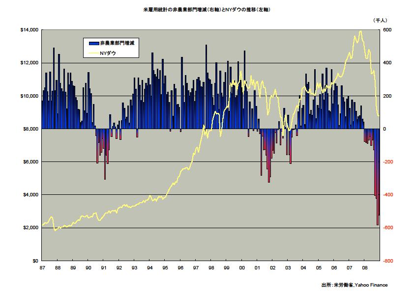12月の米雇用統計は1939年調査開始以来初となる2ヶ月連続で50万人を超える減少幅で、12ヶ月連続の減少となりました。さらに、失業率は1993年1月(7.3%)以来16年ぶりの高水準でした。