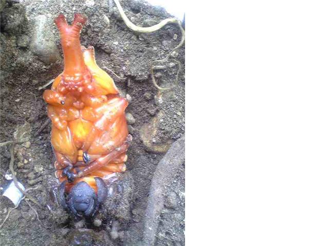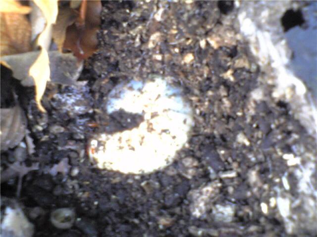 朽木の下でカブトムシの幼虫がもう大きくなっていました。夏にはこんな風に蛹になり成虫になり、色が変わり、体が固まってから土の中からでてきます。この時期はあまりにおいはしませんが、勘で探し当てました。