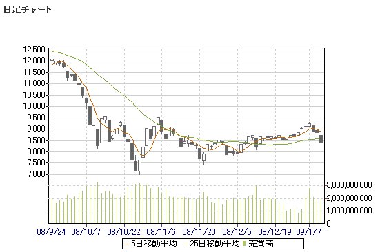 年初来高値・安値 1/4 15,156.66・10/28 6,994.90