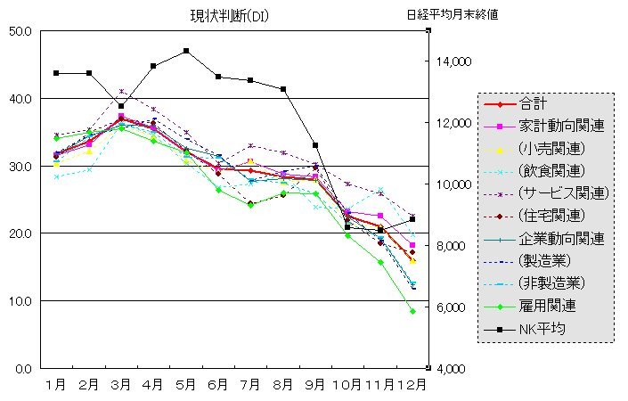 すべての指標が下落したが、なかでも雇用はついに1ケタまで