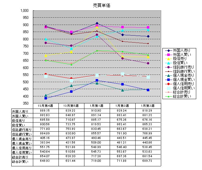 1月第3週投資主体別売買動向