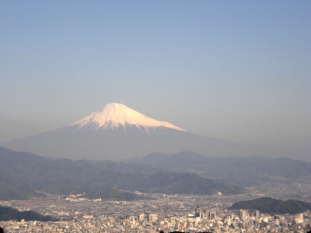 天気も良く、気温も高く、ハイキング日和でした。富士山、南アルプス、伊豆半島、360度の眺めは素晴らしい。ちょっと気温が上がりすぎ、全く春の景色(かすんだ)です。