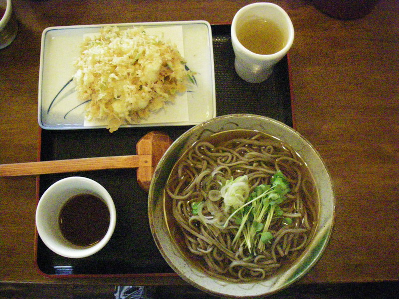 昼食は元祖車屋の掻揚蕎麦です。