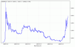 2日のソウル市場では一時1ドル=1600ウォン台寸前まで急落し、米金融危機が表面化して以来の最安値を更新した。米国の金融混乱の長期化や中・東欧の通貨安が重しになり、海外マネーの流出が続いている。 ウォン相場は米金融危機の深刻化を背景に、昨年11月に一時1ドル=1525ウォンまで下げた後、年末に1ドル=1200ウォン台に戻していた。年明けから再びウォン安基調に転じ、1998年以来の安値圏で低迷している。97年のアジア通貨危機の際は、1ドル=1962ウォン(終値)まで売り込まれたことがある。 ウォン相場は対円でも100円=1600ウォン台に下落し、過去最安の水準で推移する場面が増えている。