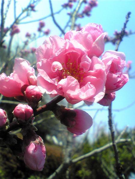 はな、滝の水公園、桃、滝の水公園は夜景が綺麗で有名ですが、桃も綺麗に咲いています。昔は沢山桃が植えられていましたが、最近は枯れてしまって寂しくなりました。それでも勢いのいい桃もありまだ残っています。ただ、桃は25年くらいで嫌地をしますのでもう直ぐ枯れてしまうでしょう。
