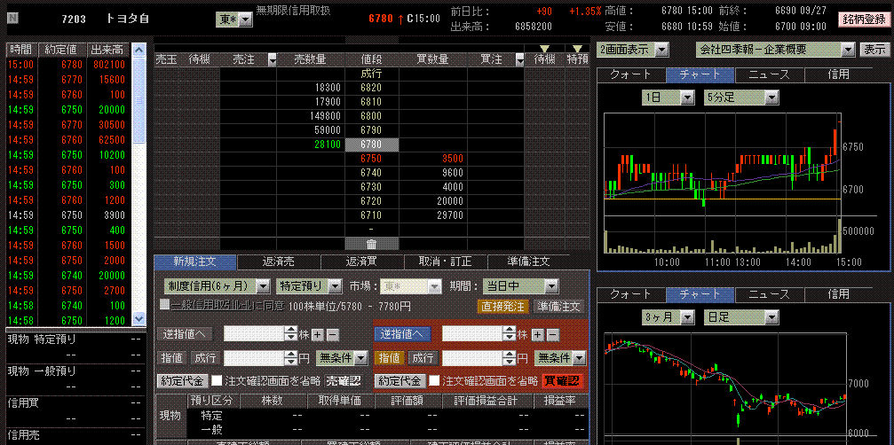 ・日経平均は小反落、TOPIXは引けのバスケット買いで小幅続伸。朝方は、NY市場の続伸と昨日からの強気継続で買いが先行しましたが、徐々に下がっていきました。昨日大幅高していた、不動産、保険、銀行、証券などは全体的には弱かったです。やっぱり、ヘッジファンドの買戻しだったんですかね。TOPIXの引けのバスケット買いはドレッシングっぽいですね。機関投資家が大量に持っているトヨタが終日強くて引けに大きな買いが入ってました(6月末も同様の動きをしていました)。