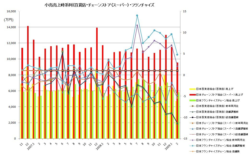 百貨店、スーパー、コンビニの2月の売上げがそろいました。
