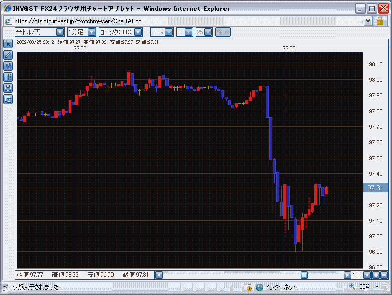 (同時間帯でユーロ/ドルは200pip弱のドル安、