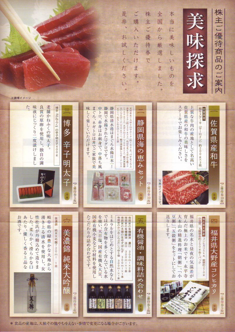 お酒の飲まない、近くに店舗が無いっと言う場合は優待券を返送することで写真の通りの商品と交換する事もできます。