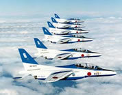 ブルーインパルスが雲の上を綺麗に編隊を組んで飛んでいる