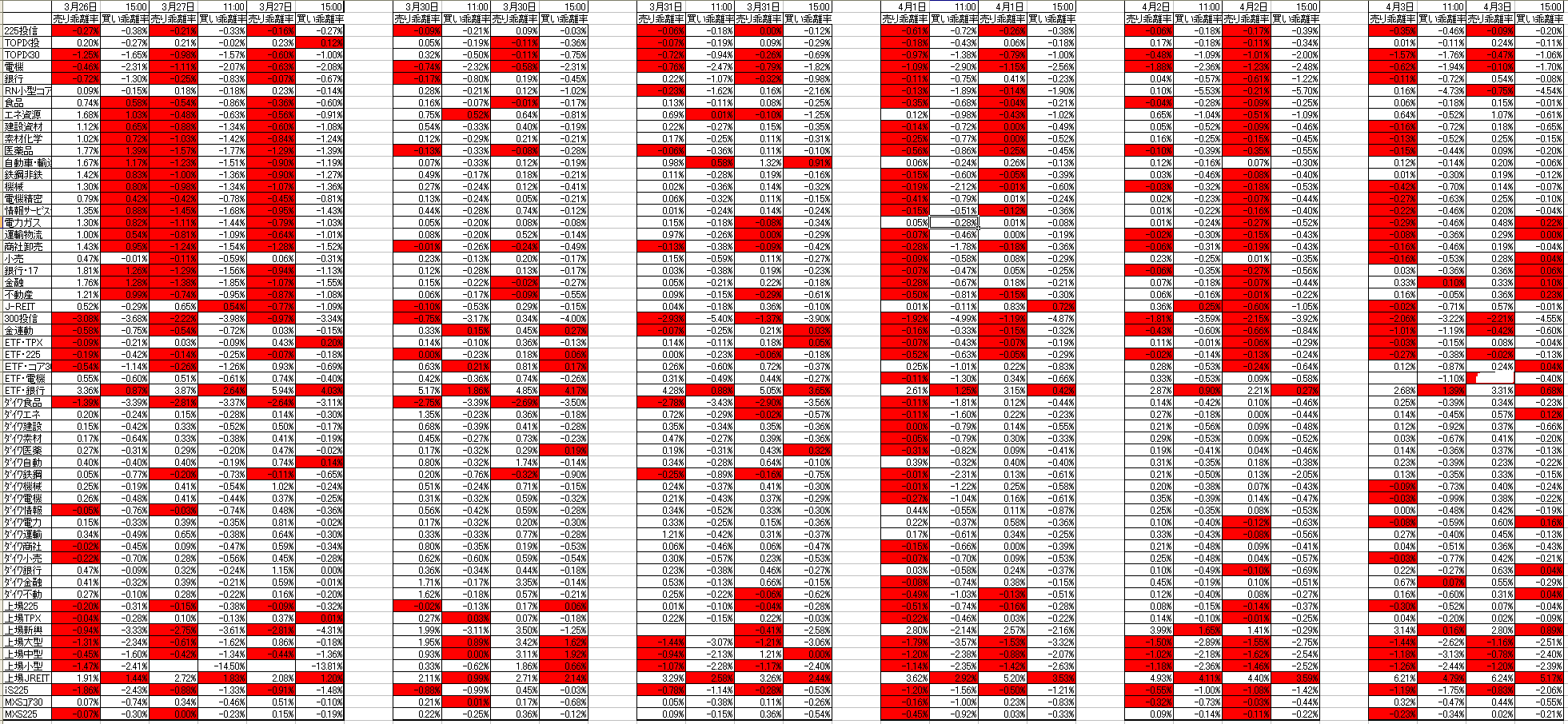3月26日以降の乖離率をまとめてみました。