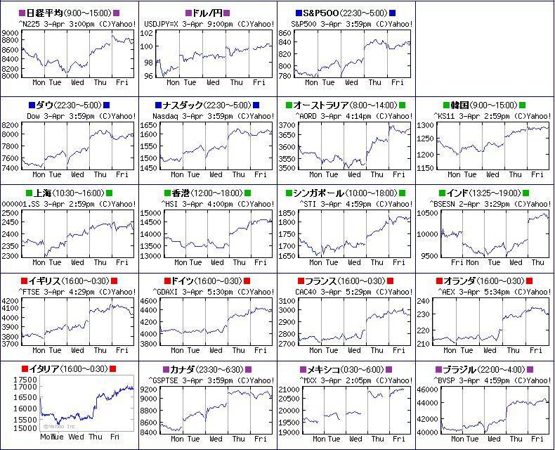 ウェリントン、シドニー、香港、シンガポール、フランクフルト、チューリッヒ、ロンドン、トロント、南ア休場(イースター休暇)