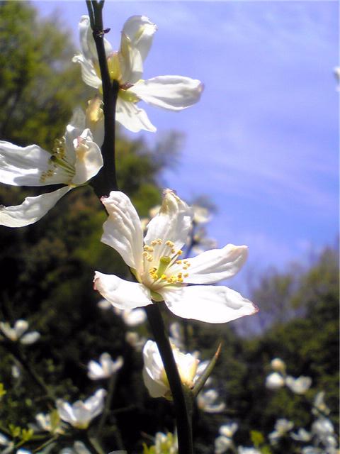 トゲが物凄く痛い枝ですが、春先に白い
