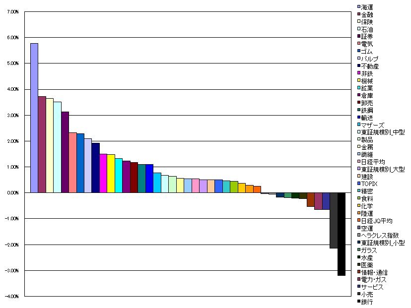 38.電力・ガス -0.65%(-1.16%)