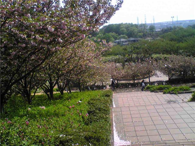 はな , 桜吹雪 , 八重桜 藤 キリシマツツジ 大高緑地:桜吹雪と八重桜、藤も満開近し。大高緑地もすっかり夏らしくなり、26度となってクロアゲハも飛んでいました。今日の収穫は1.この桜吹雪の元と2.八重桜に藤の花に桜吹雪でした。また、3.赤いキリシマツツジも咲き誇っていました。桜の花が大きく写真でも散る様子が蝶が舞うごとく見事でした。