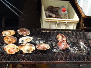 ここら辺は、観光地ではありませんが、夏場や花見の季節はホタテなどの海産物をその場で焼いて食べさせてくれます。