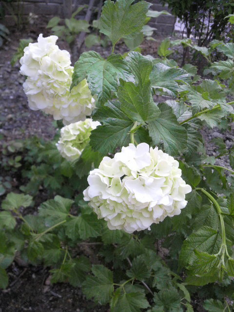 白い花がま~るく集まって、文字どおり雪の球のようです。