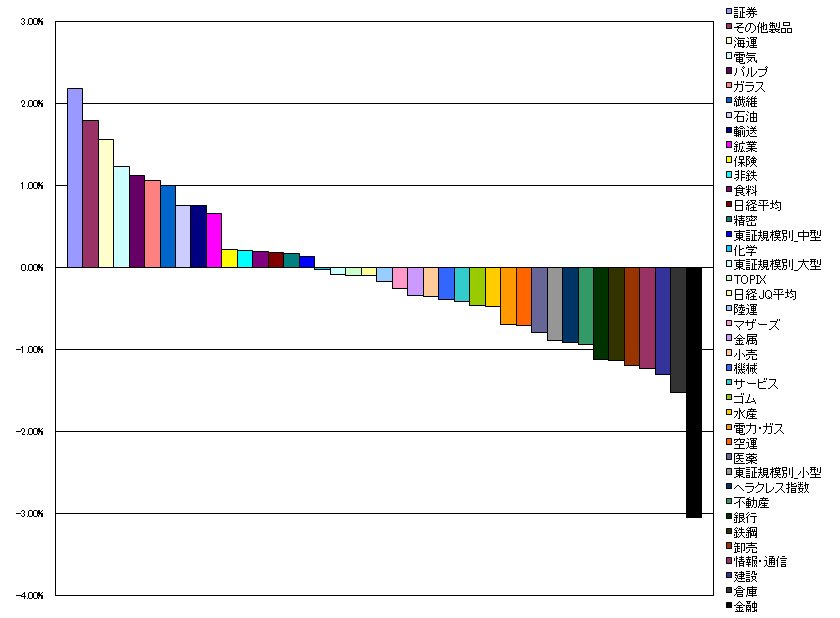 1.証券 2.19%(-3.83%)