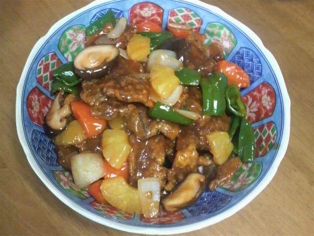 私のひいきのお店では、黒酢を使った真っ黒い酢豚が出てきます。見栄えはあまりよくないのですが、おいしいんですよねー、これが(^^)