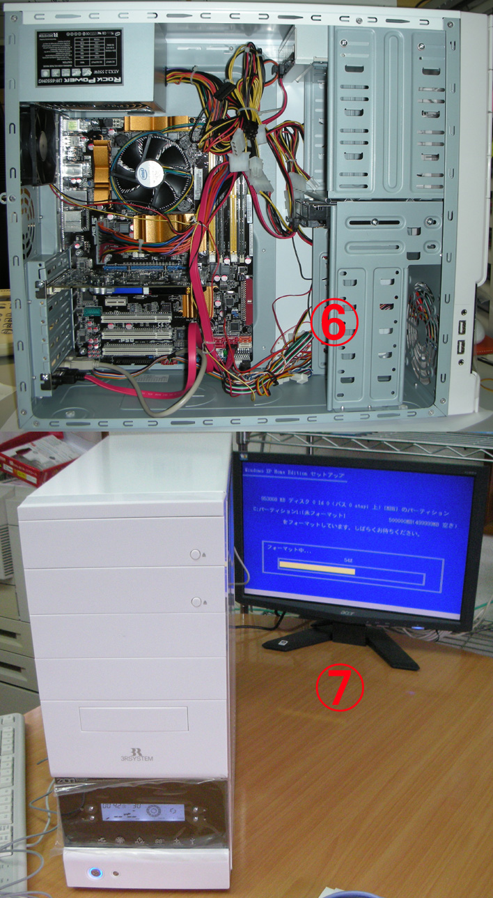 ⑥ケースにマザーボード・②HDD・④DVDを取り付けて