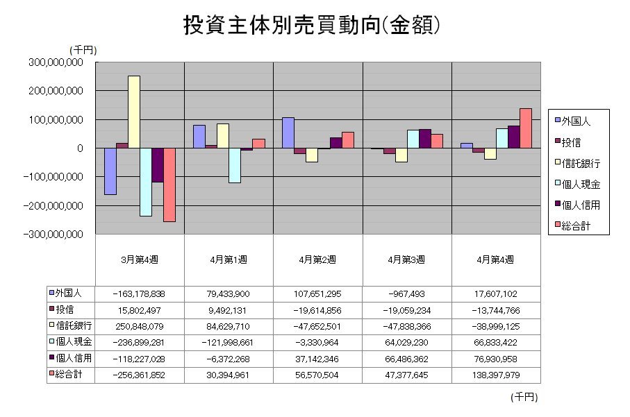 差し引き137億4476万6千円の売り越しでした。