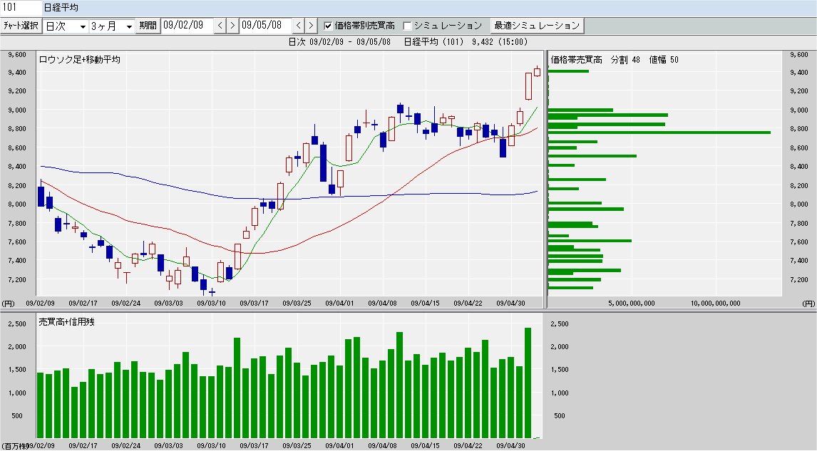 (始値9,351.40レンジ9,349.57-9,464.43±114.86)