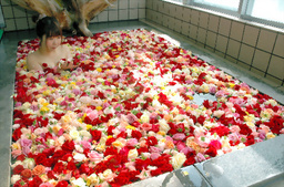 バラの甘い香りが浴室に漂い、入浴客らは「気持ちが癒やされます。女王様になったような気分です」とうっとりするそうです。