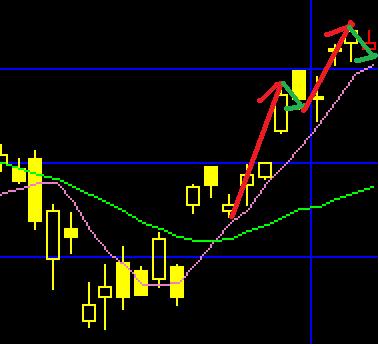 5日移動平均線あたりを下回らなければこの状況が続いてしまいそうな予感。