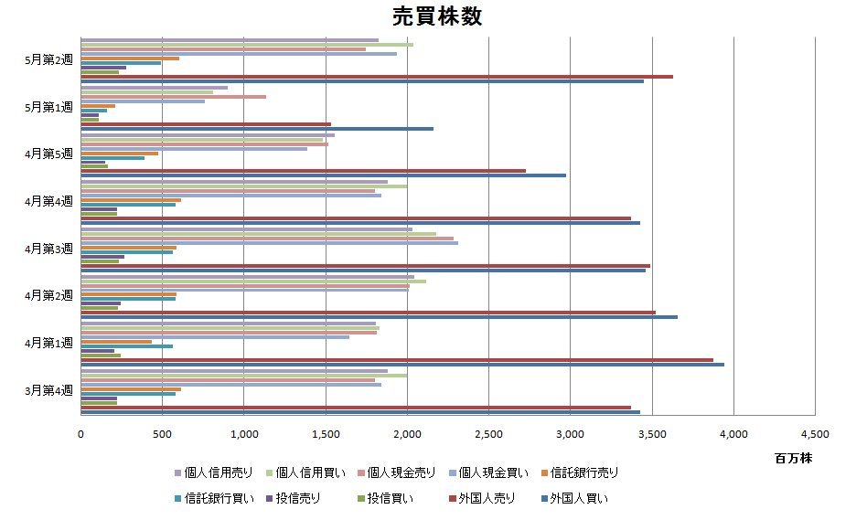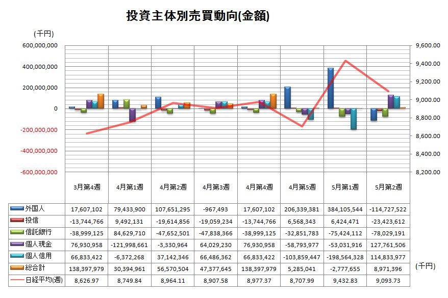 2009年5月第2週投資主体別売買動向グラフ