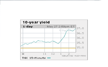 ただし、より直接的にダウ平均株価の下落を導いたのは、長期金利の急上昇だと思われます。10年もの国債が3.71%と昨年11月以来の水準となりました。金利上昇が、景気回復期待の高まりによるものであれば何も問題はないのですが、今回の上昇は膨大な財政赤字にGM問題が絡まったものであるために、悲観的に見るべきだと考えます。