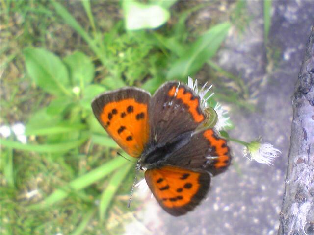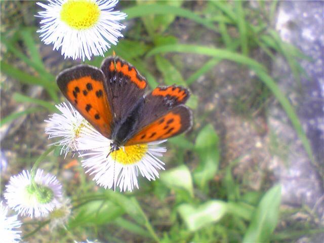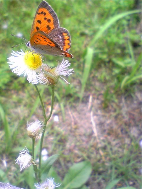 黄色い中心の 白い花と、橙色の羽の ベニシジミ なんですね。