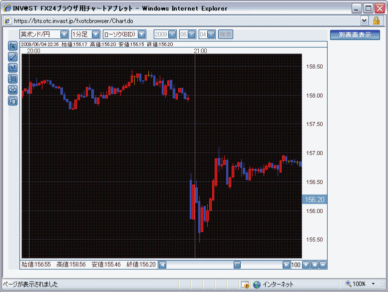で、その後も数分間、50銭/分レベルの動きを繰り返してるし。