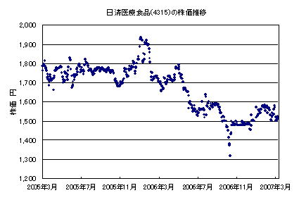 株価の推移を画像1に示しました。医療保険の算定方式の改定に加え、70歳以上の入院患者の食費負担増額(H18年10月~)、介護施設の食費自己負担(H17年10月~)など、制度改定が業績に悪影響を及ぼすと懸念された結果、株価は値下がり傾向にあります。