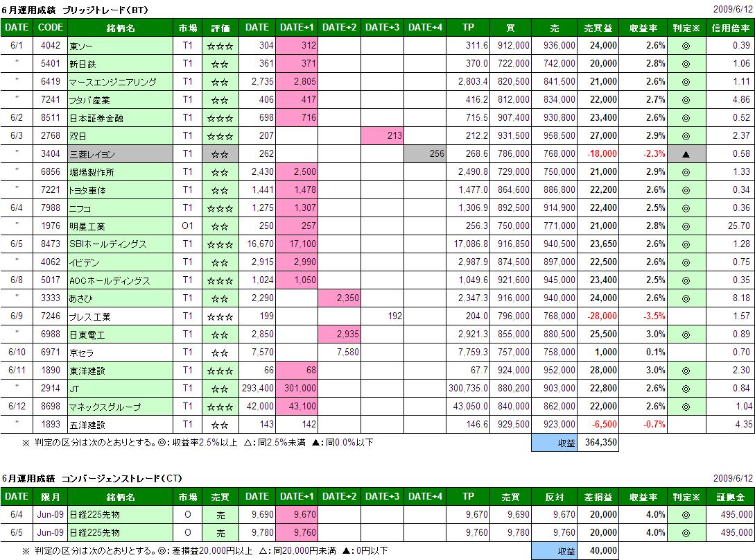 勝敗:8勝1敗(未決済1銘柄含む) 勝率:88.9% 累計収益:165850円
