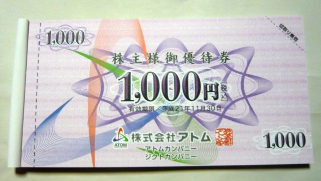 写真は最後の優待券で既にアトム名義になっていますねf(^^;)