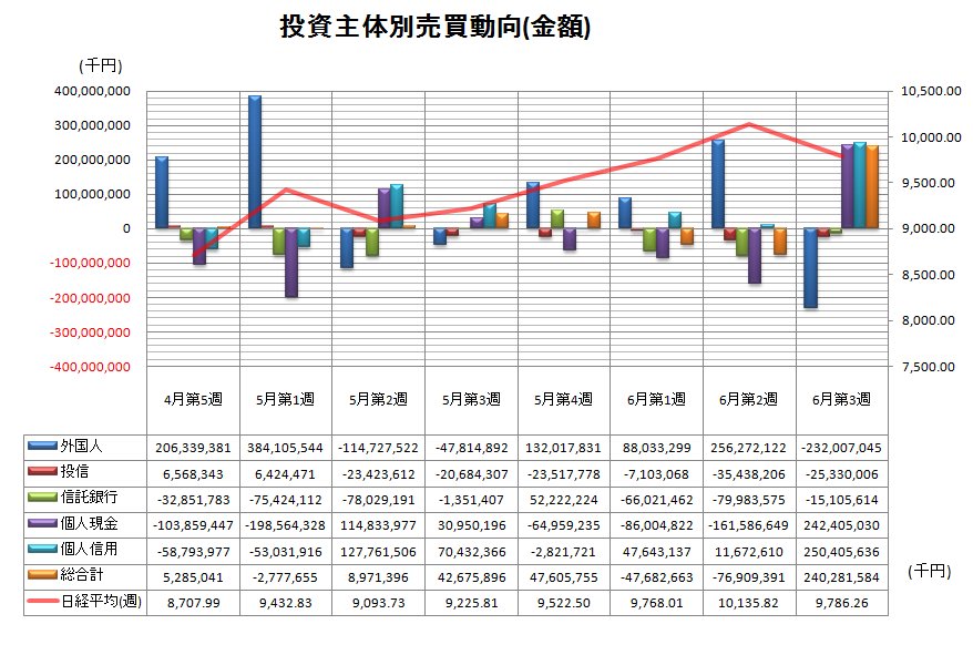セオリー通りに下落時の外国人の売り、個人の買いでした。