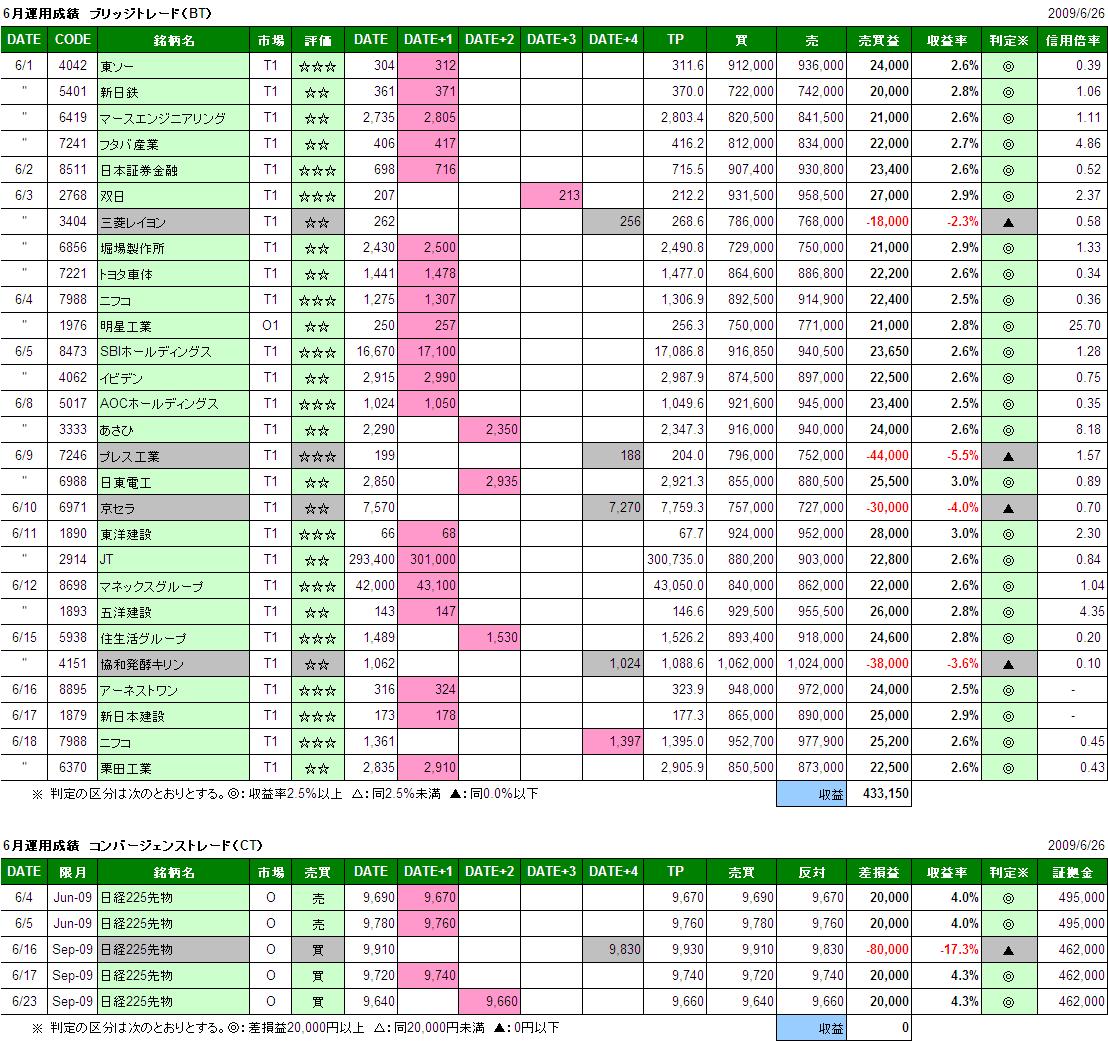 6月30日までの購読者へは「ディファレンストレード(日経225先物取引)」の運用モデルの全貌を公開します。ちなみに、ディファレンストレードによる6月の運用成績は9万円の収益でした。