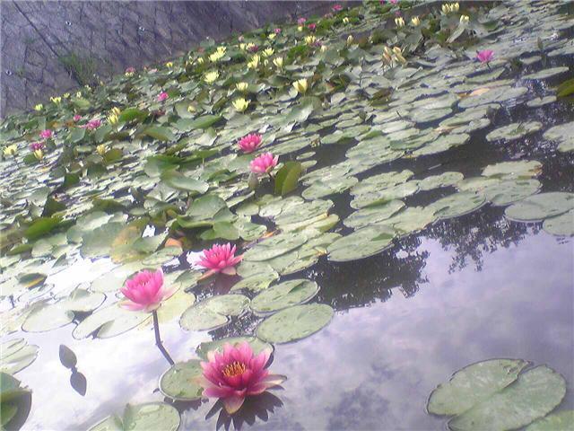 たぶん、日陰だと花は咲かないのでスイレンの花だけに日が当たるようにしないと水温が上がりすぎます。