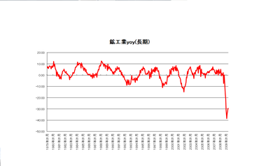 まず生産の動きを見ましょう。前年同月日の増減率です。底打ちがやっと目に見える動きになってきました。