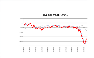次に、出荷数量の増減率から在庫数量の増減率を差し引いて算出する景気指標である「出荷在庫バランス」の動きです。生産の動向よりも、さらに底打ちが鮮明ですね。