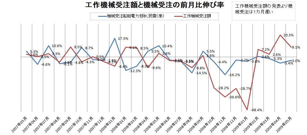 一方、製造業からの受注は5.4%増で、2カ月ぶりに上昇。一般機械メーカーからの運搬機械などの受注や、石油・石炭製品工業からの化学機械などの受注が寄与したことなどから機械受注全体の動向に関し内閣府は「減少率は縮小傾向にある」としている。(産経新聞)