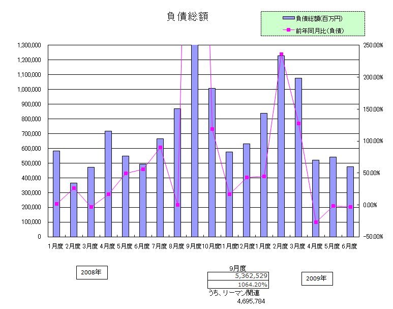 負債総額は477,116百万円で前年同月比で3カ月連続の