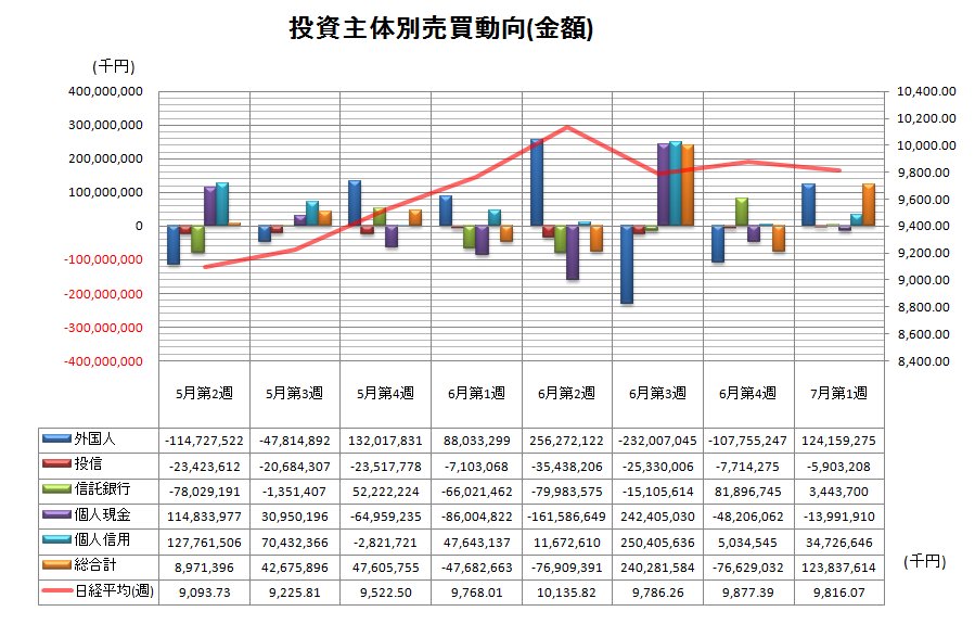 7月第1週の日経平均は61円32銭、0.62%の下落。
