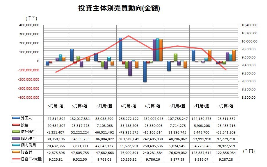 7月第2週投資主体別売買動向(グラフ)