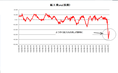 まず、生産の動きから。原指数の前年同月比はー23.4%。事前予想はー23.5%でしたから、ちょっとはマシという程度です。株式市場の好意的な反応が長続きしなかったわけです。