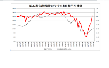 そこで、在庫循環モメンタムを通して、鉱工業生産動向を見てみたいと思います。