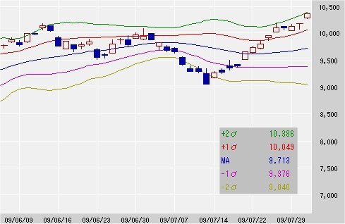 25日移動平均線 9,713↑
