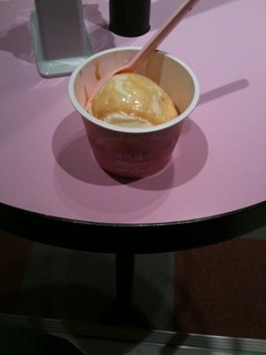 TVでとりあげられ非常に気になっていたアイスを食べる機会を得た。冷たいアイスクリームにホットキャラメルをかけてある。まぁまぁかな。ホエー豚丼も食べたかったが休みじゃないのに店は閉まっていた。最近、札幌の工場を閉鎖したらしぃ。ブームは怖いな・・・