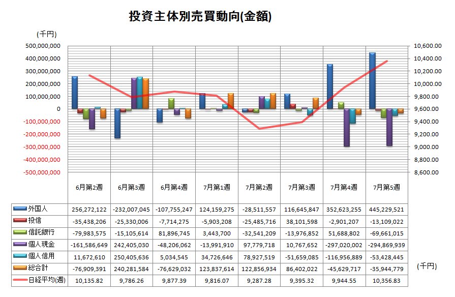 7月第5週の日経平均は412円28銭、4.15%の上昇。