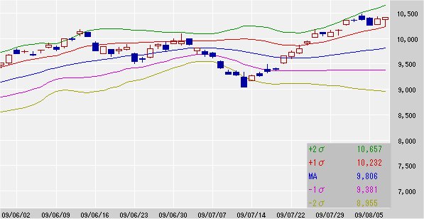 25日移動平均線 9,806↑